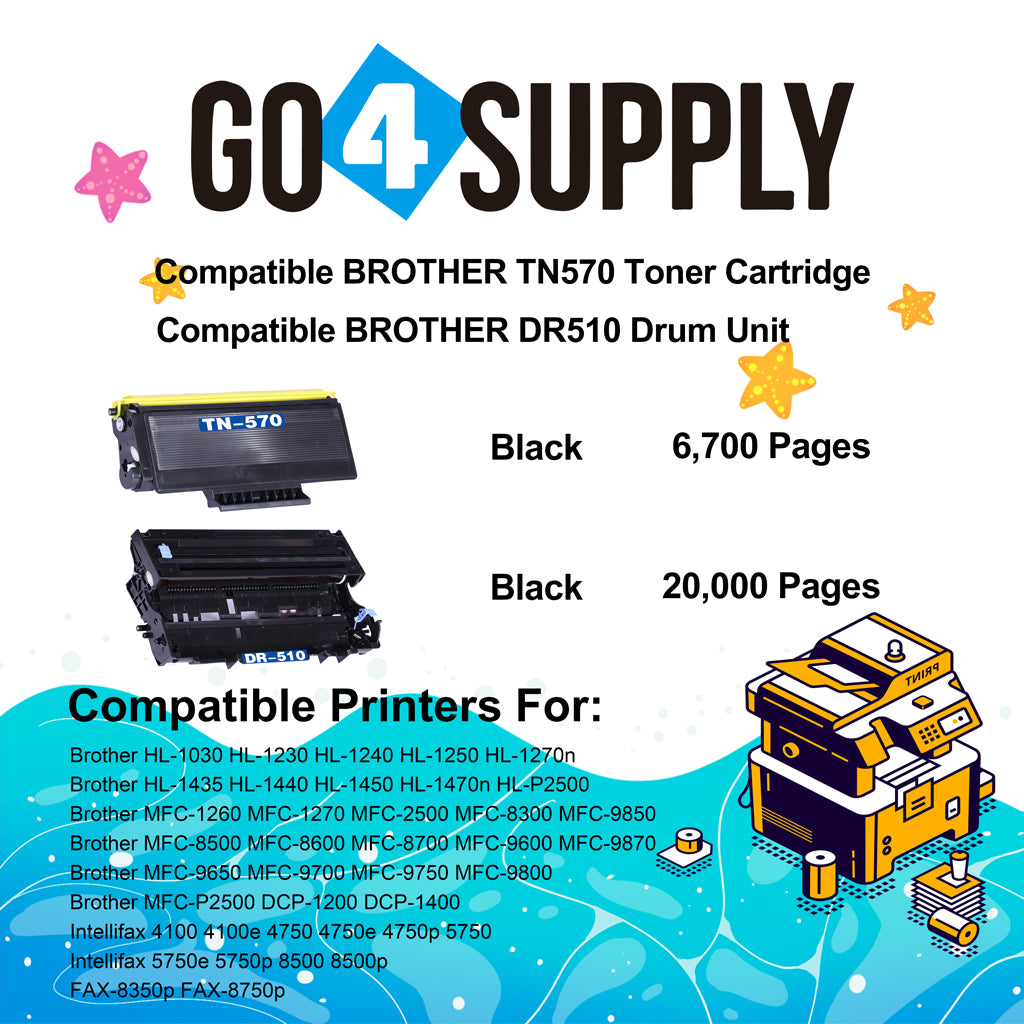 Compatible Combo Set (Drum + Toner) TN570 TN-570 Toner Cartridge with DR510 DR-510 Drum Unit Used for Brother HL1030/1435/1230/1440/1240/1450/1250/1470n; MFC8500/8600/8700; DCP1200/1400 Printer