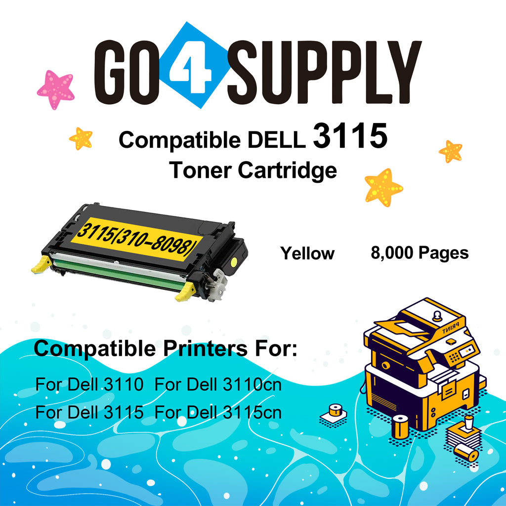 Compatible Yellow Dell 3115 Toner Cartridge Replacement for 310-8094 Used for Dell 3110cn, 3115cn, 3110, 3115 Printers