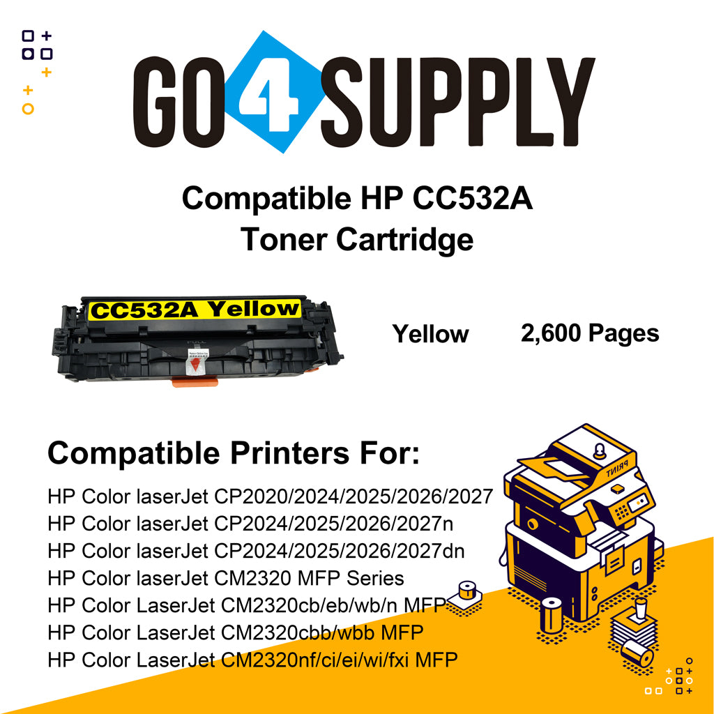 Compatible Yellow HP 532 CC532A 532A Toner Cartridge Used for HP Color laserJet CP2020/ 2024/ 2025/ 2026/ 2027/ 2024n/ 2024dn/ 2025n/ 2025dn/ 2025x/ 2026n/ 2026dn/ 2027n/ 2027dn; CM2320 MFP Series Printer