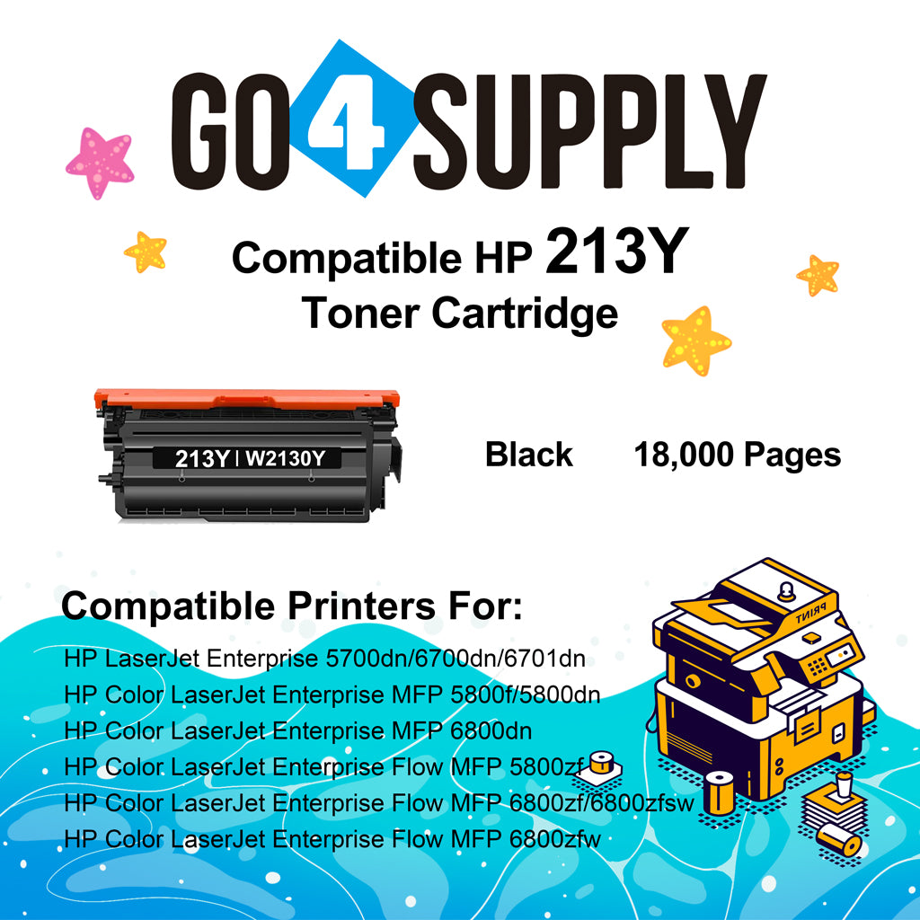 Compatible HP 213Y W2130Y Black Toner Cartridge Used for HP LaserJet Enterprise 5700dn/6700dn/6701dn, Color LaserJet EnterpriseVFP 5800f/5800dn/6800dn, Color LaserJet Enterprise Flow MFP5800zf/6800zf/6800zfsw/6800zfw Printers