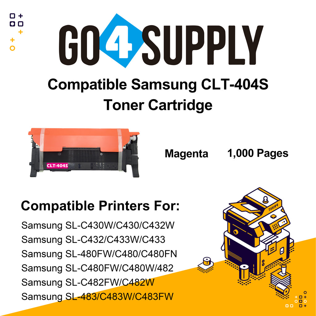 Compatible Magenta Samsang 404 CLT404S CLT-404S Toner Cartridge Used for Samsung SL-C430W/C430/C432W; SL-C432/C433W/C433; SL-480FW/C480/C480FN; SL-C480FW/C480W/482; SL-C482FW/C482W; SL-483/C483W/C483FW