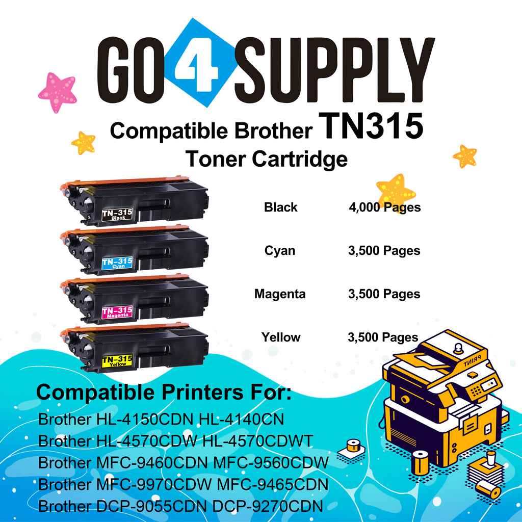 Compatible Combo Set Brother TN-315 TN315 (BCMY) Toner Cartridge Used for Brother HL-4140CN HL-4150CDN HL-4570CDWT HL-4570CDW MFC-9460CDN MFC-9560CDW DCP-9055CDN DCP-9270CDN Printers